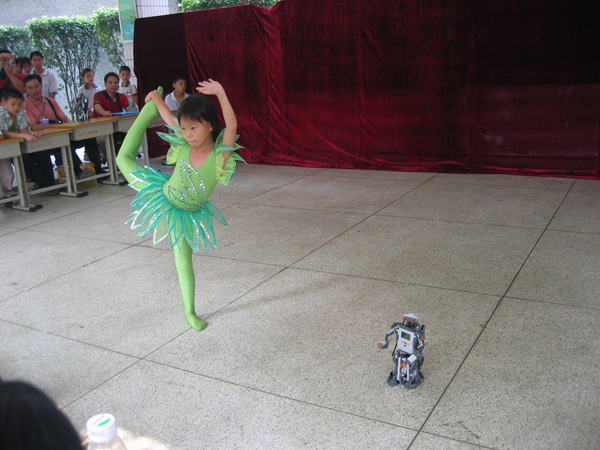 广州市智能机器人比赛我校的学生与机器人共舞