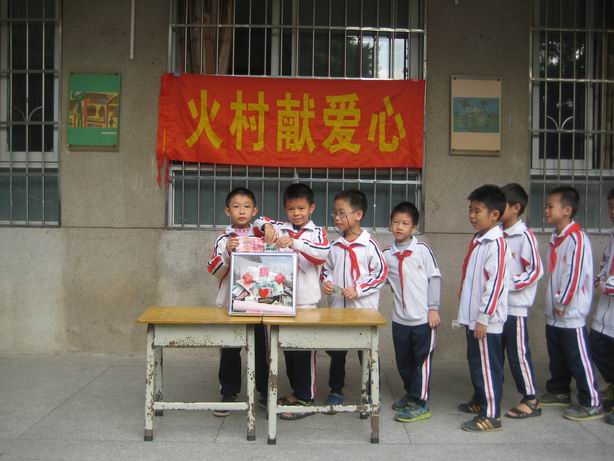 2013年10月18日,教育局团委在信息网发出为帮助科学城中学、九龙第三小学、贤江小学贫困生倡议。为了响应倡议,火村小学在2013年11月6日举办了师生捐款活动。虽然学生们捐得不多,但看到孩子们用攒下的零用钱全数捐赠时,老师们都感动了。最终师生捐款共计5397.4元,全数捐赠给了需要帮助的孩子。火村小学的全体师生为贫困生带来了祝福,愿他们生活的更加美好!在2013年11月26日的信息网上我们看到了区各学校的热心,看到了贫困生的感谢信,暖暖的爱心流淌在我们的心中。2013年12月3日局团委的会议中还了解到科学城中学的贫困生在最近的考试中取得第一名,这是大家的爱心温暖了他,让他有了前进的动力!